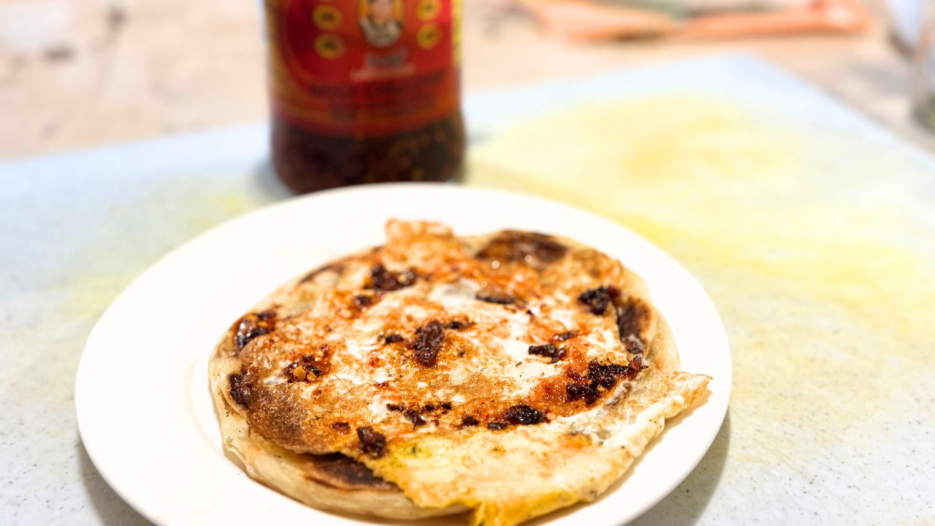 Flip, add chili oil, fold and done.