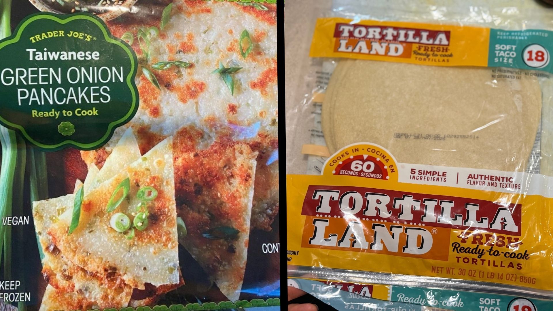 Trader Joe’s green onion pancakes vs. Tortilla Land ready to cook flour tortillas